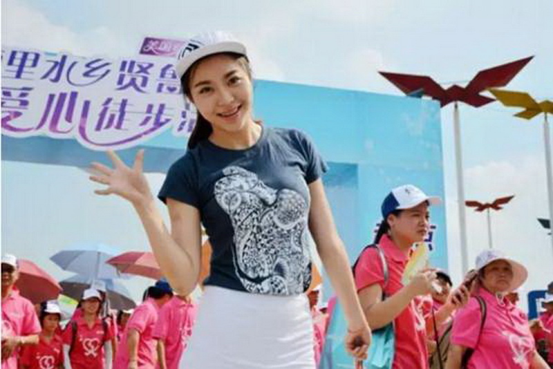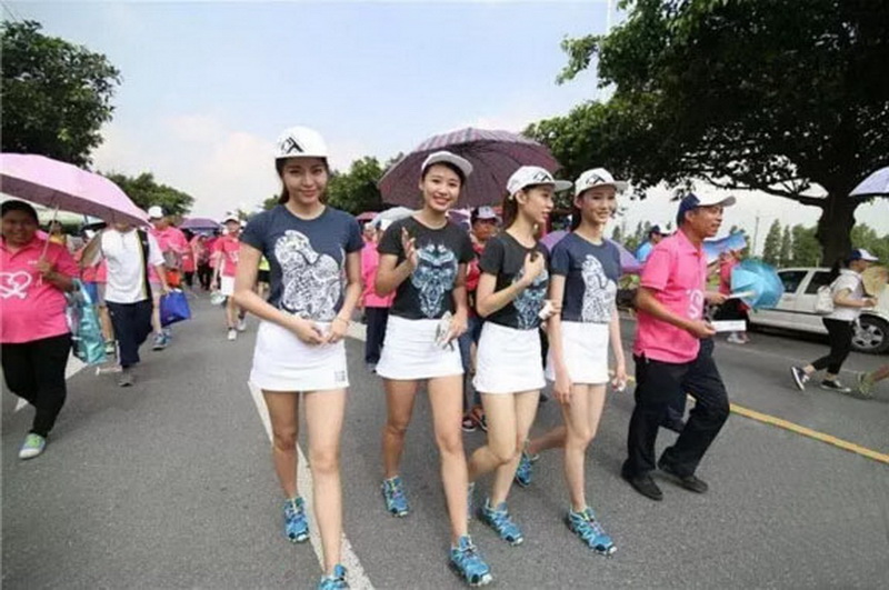 现场靓丽的珠江小姐与市民朋友、爱心企业等在贤鲁岛上进行环岛徒步。